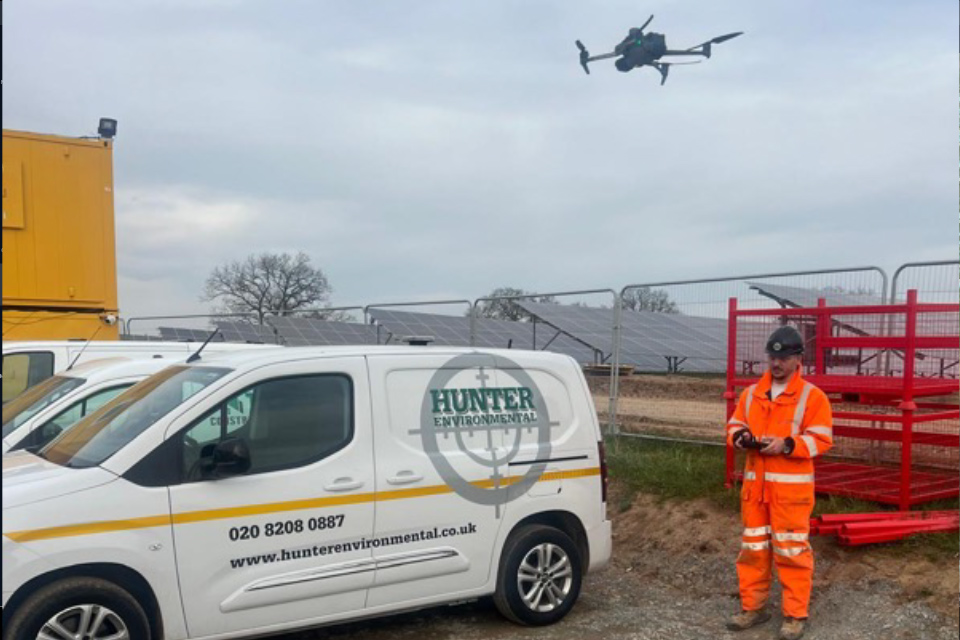 At Fraddon Solar Farm , Hunter Environmental has been making good use of the the DJI Mavic 3 Enterprise drone and using AeroPoints for survey-grade ground control.